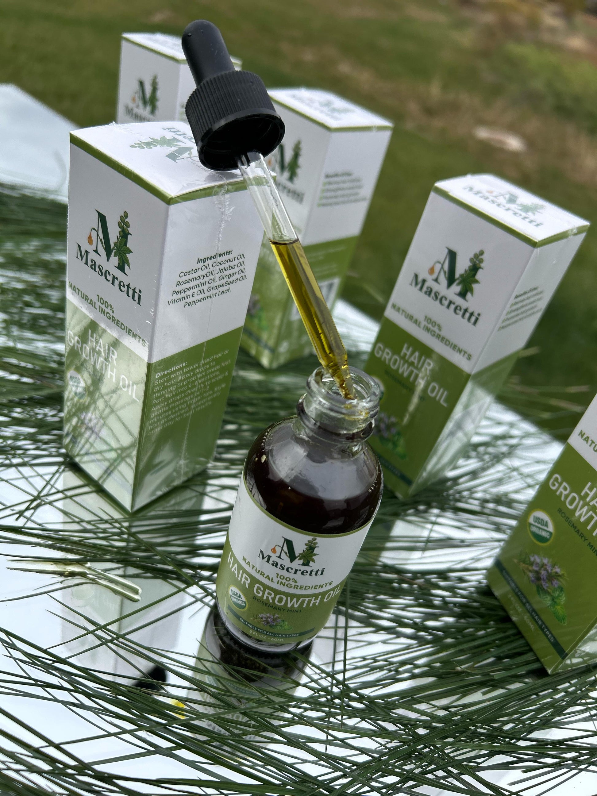 Hair Growth Oil with Natural Rosemary, Coconut, Castor, Jojoba, Peppermint and Ginger Oils, Vitamin-Enriched Serum for Damaged Hair (2oz)